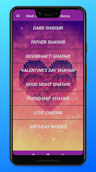 ダード・シャヤリ、友情・シャヤリ、ロマンチック・シャヤリ、または励ましの引用をお探しの場合でも、Hindi Love Shayari Statusには幅広いカテゴリがあります。アプリを探索し、シャヤリの世界に没頭し、お気に入りの作品を大切な人と共有してください。